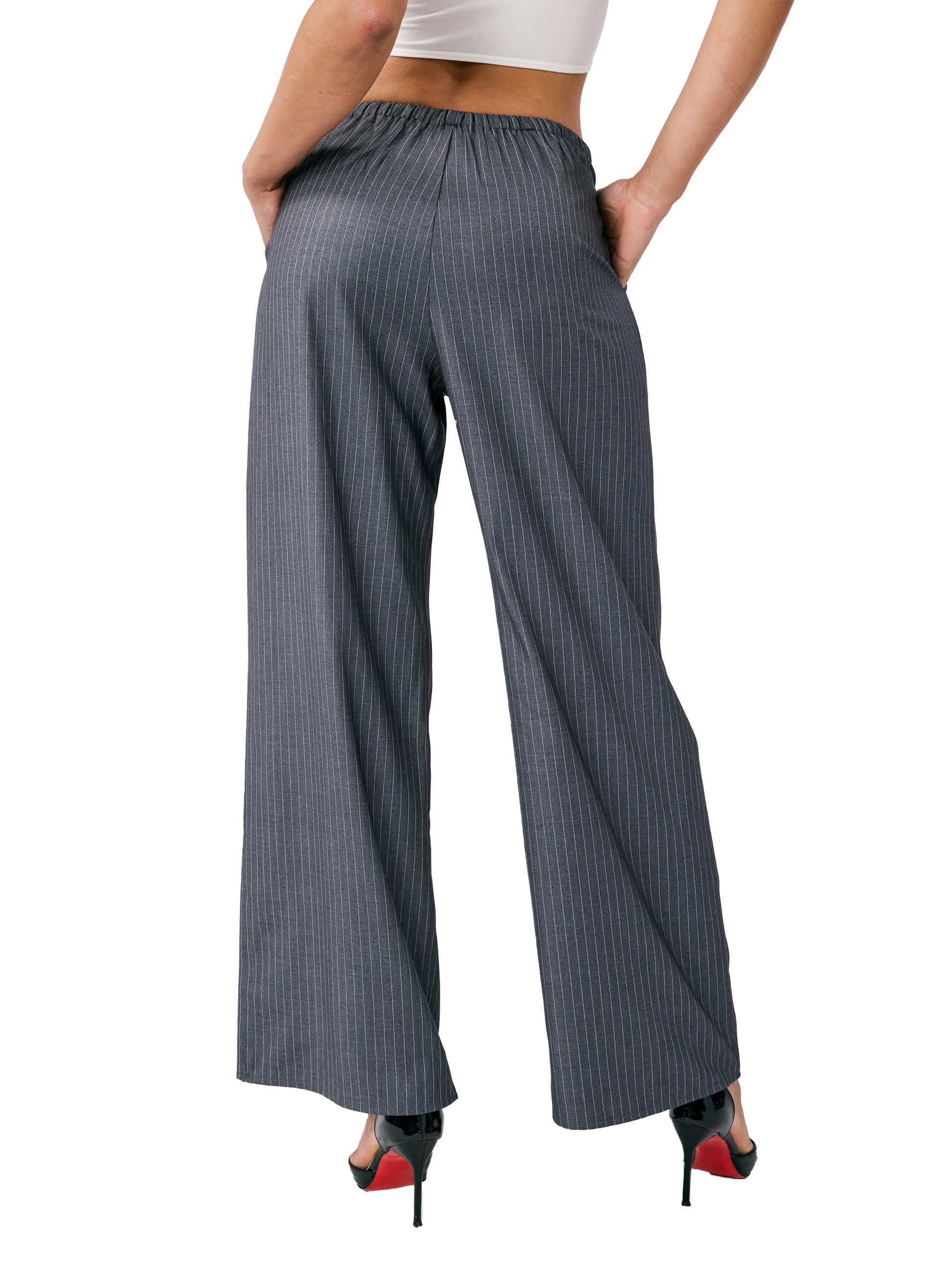 Tailored pull on pants in black stripe
